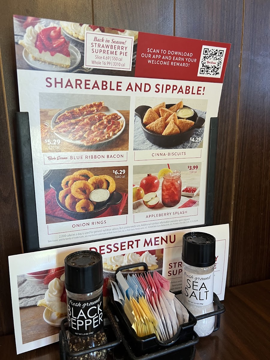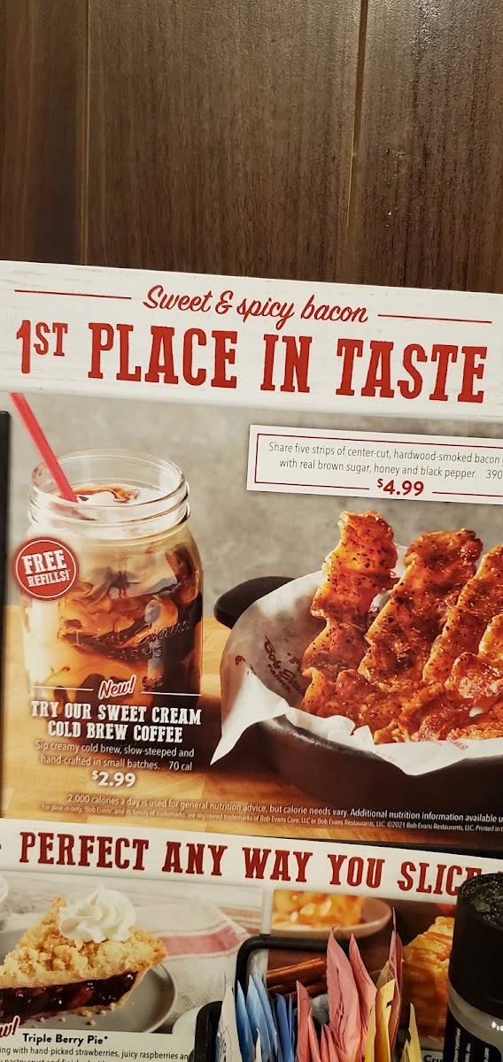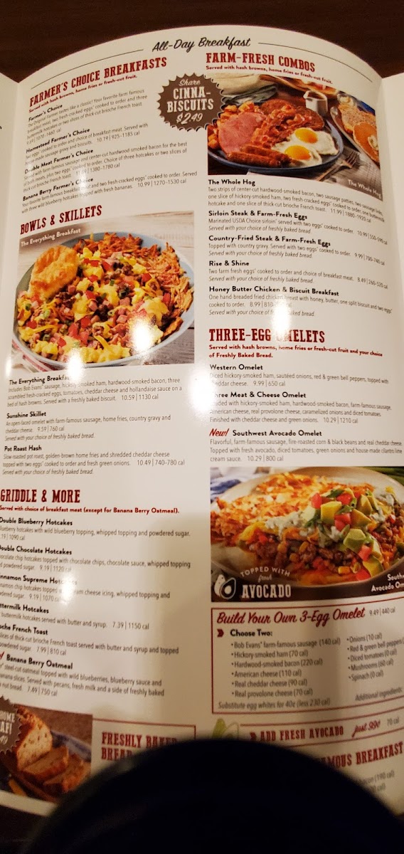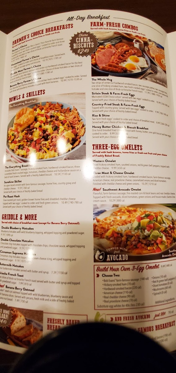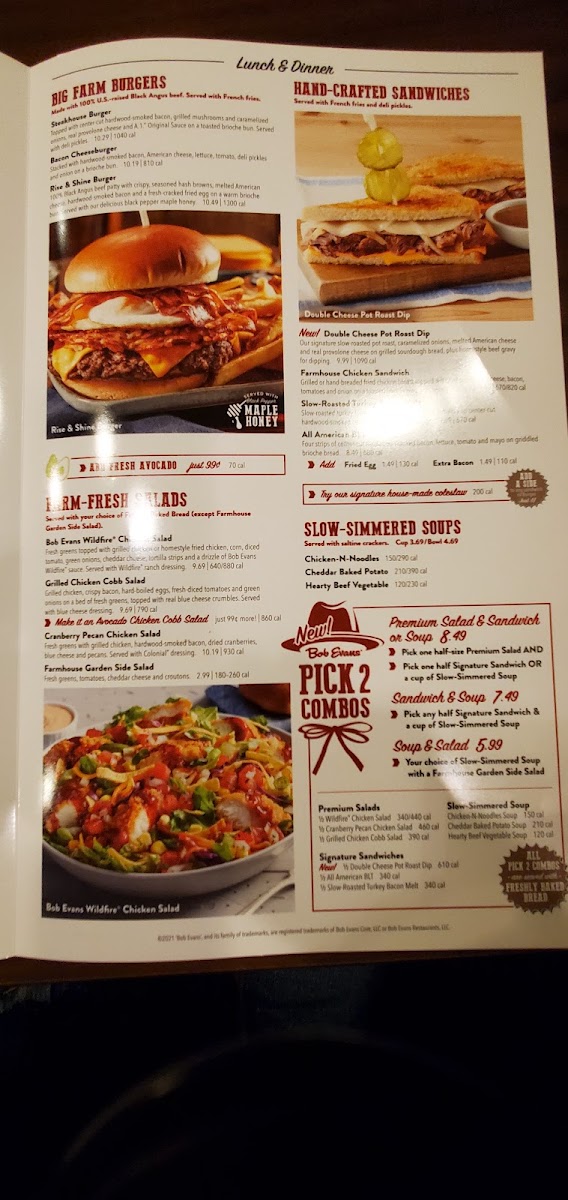 Shareables also shine with crispy fried pickles, hand-breaded chicken tenders, and thick-cut onion rings, each delivering satisfying, bold flavors. The cowboy fries, topped with sausage gravy and cheddar cheese, add a rustic twist to traditional sides. Bob Evans’ dedication to fresh, delicious food, reflected in customer favorites like their banana nut bread and fluffy pancakes, creates an inviting experience. While service experiences vary, the menu's authentic taste and comforting portions keep guests coming back for more.